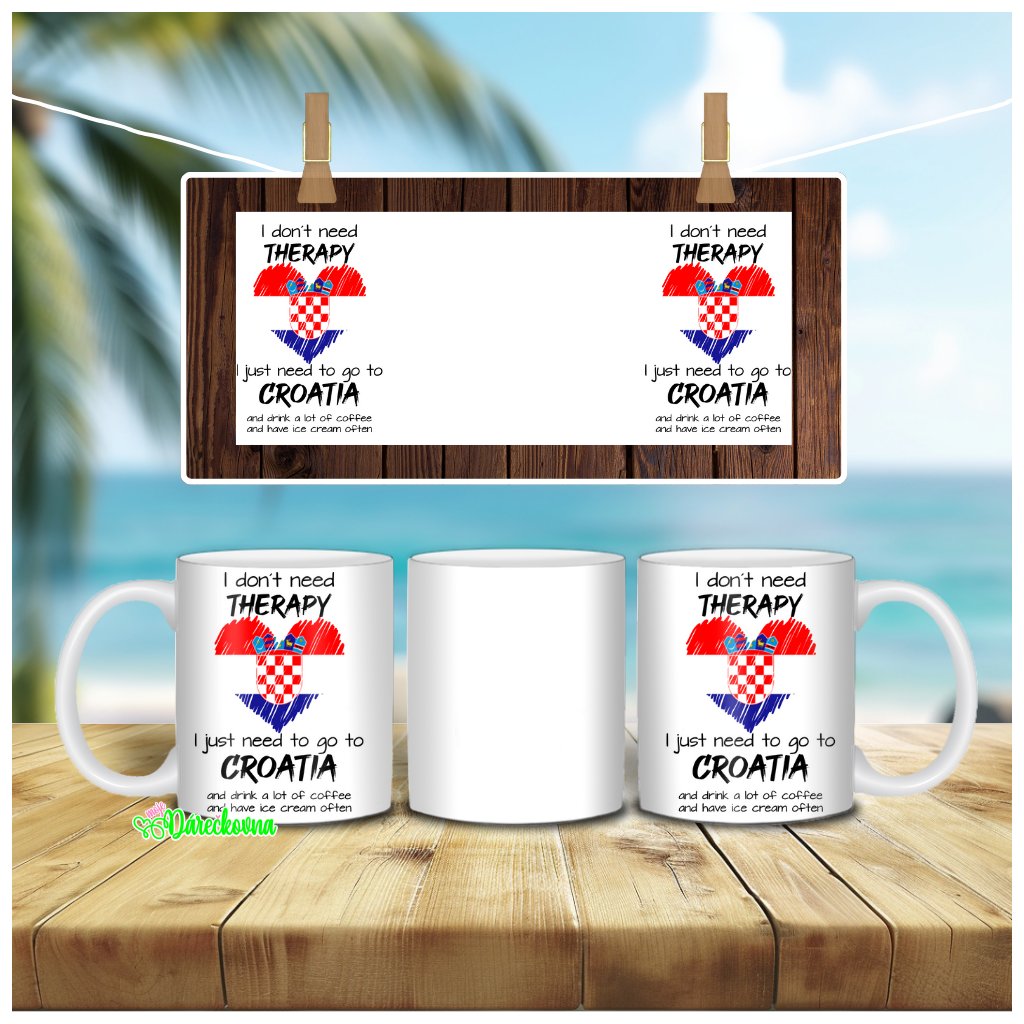 Chcete být každý den motivovaní a mít skvělou náladu? Tento originální hrníček je stvořený pro milovníky cestování, dobrodružství a odpočinku na pláži. Jeho nápis „I Don’t Need Therapy – I Need Croatia“ dokonale vystihuje touhu po exotickém úniku, kde všechny starosti zmizí pod sluncem na krásné pláži a šumem moře.