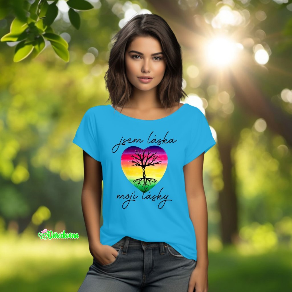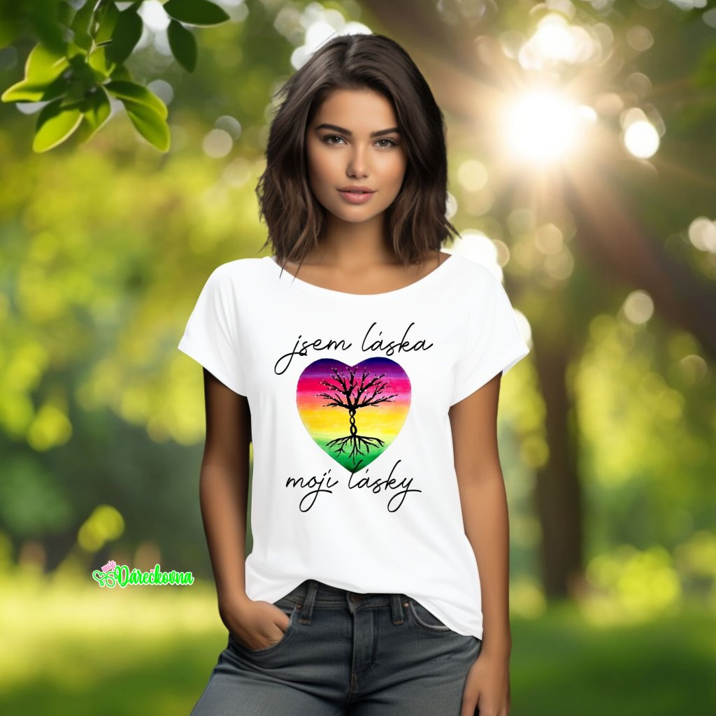 Romantické dámské tričko s autorským obrázkem a vyznáním lásky. Ve více barevných variantách a více velikostech. ❤️