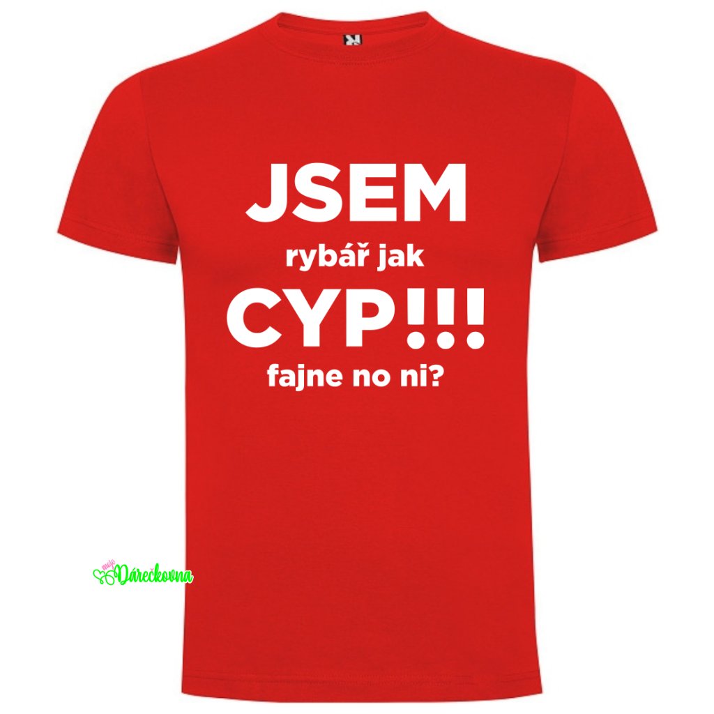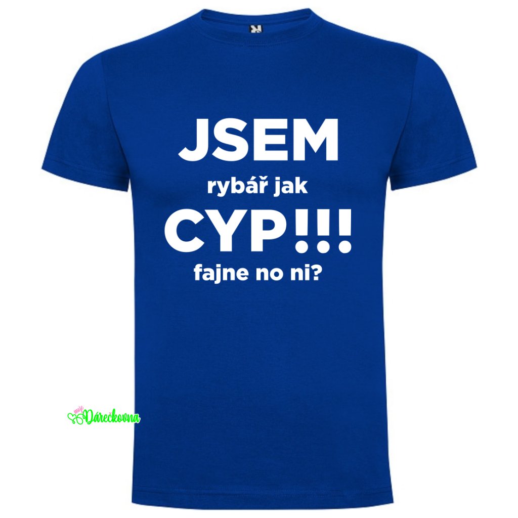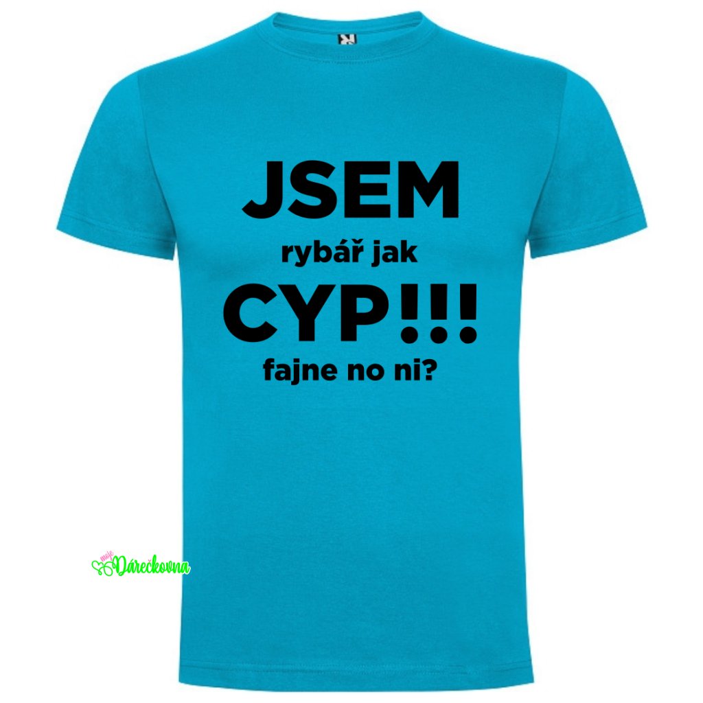 Moderní a vtipné pánské tričko s originálním nápisem „JSEM rybář jak CYP!!! fajne no ni?“ Ve více barevných variantách a více velikostech. ❤️🐟
